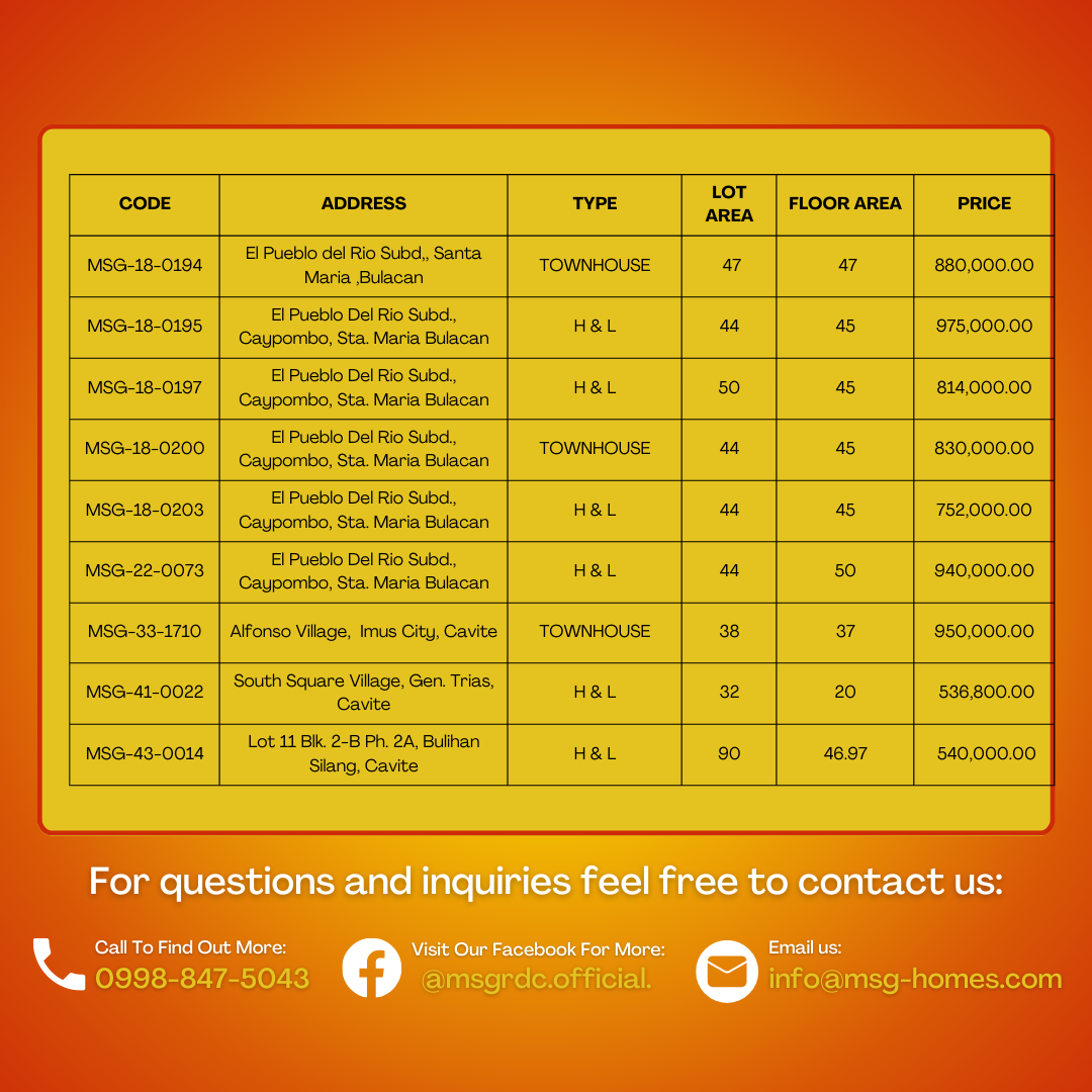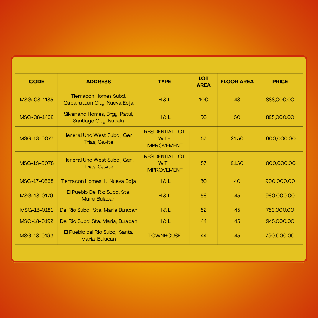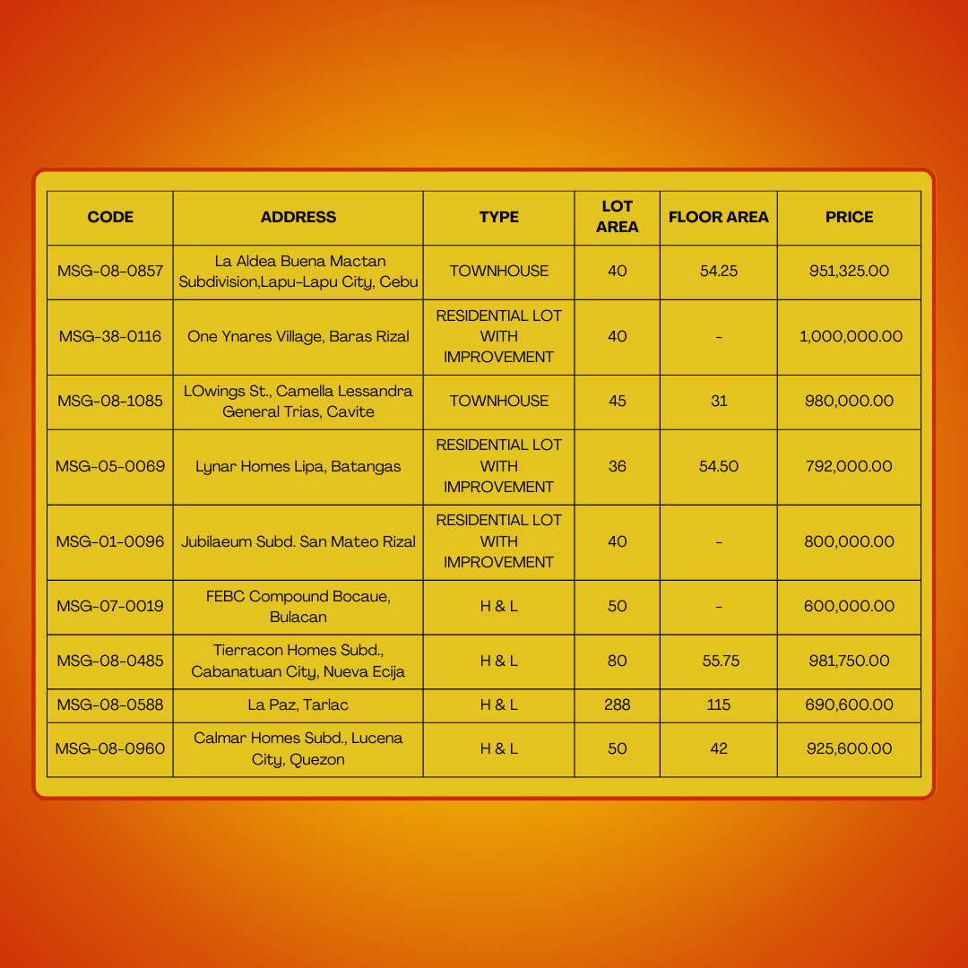 Affordable Dream Home! Explore our wide selection of foreclosed properties for sale, all priced between Php 500,000.00 to Php 1,000,000.00.
